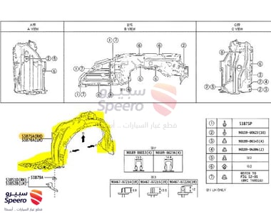 Front Right Fender Liner Toyota Corolla 2019-2024